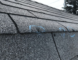 Hail damage can range from small, pinhole-sized dents to complete loss of roofing shingles. Sometimes it’s impossible to see if your roof has been damaged without a close inspection, so it’s a good idea to contact us for a thorough inspection after any storm that produces hail of a half-inch in diameter or more.
